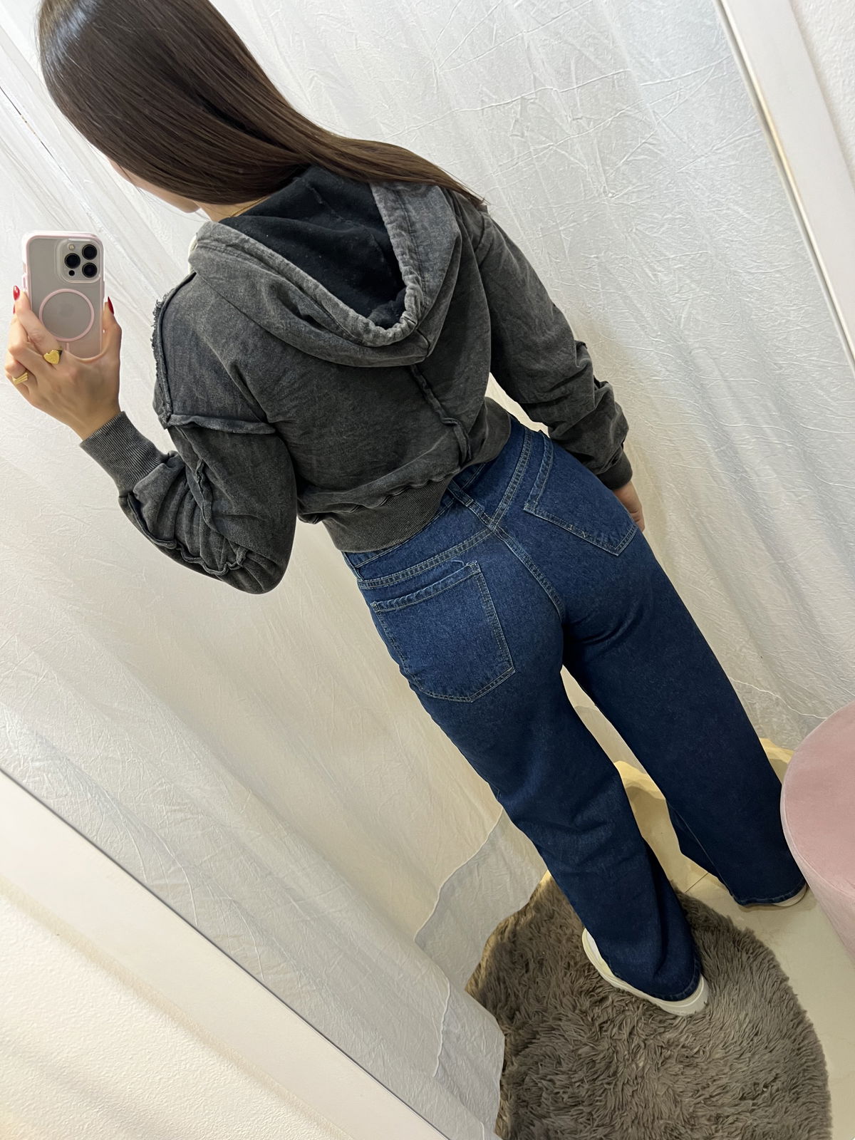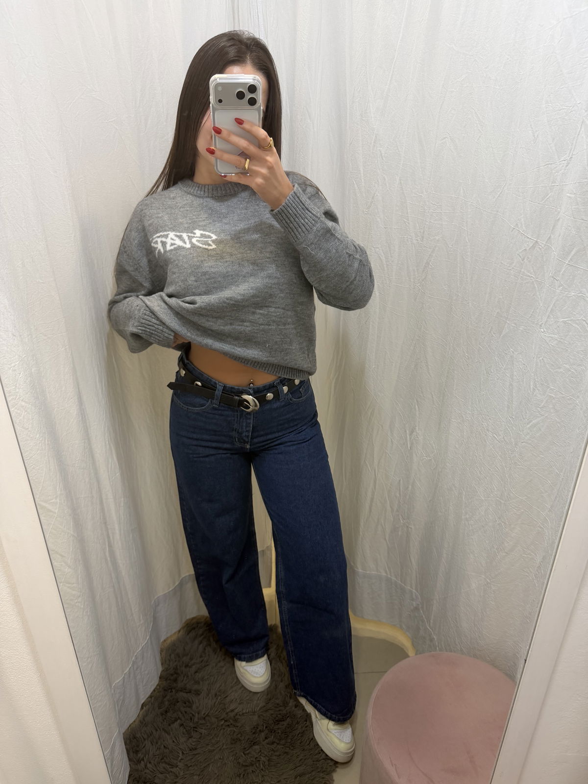 La chica de la foto es talle 38/40 y está usando 40. Mide 1.68 cm.