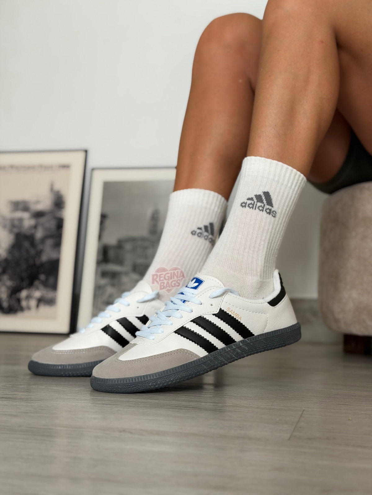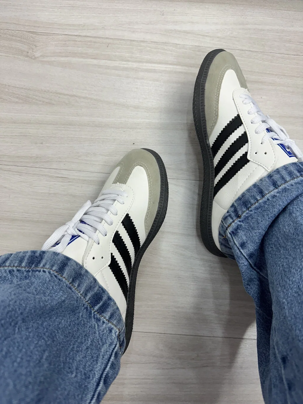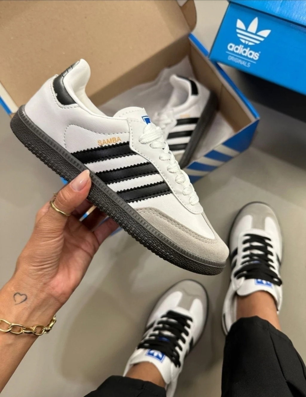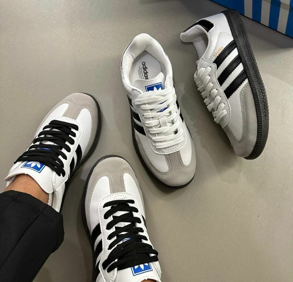 Samba de ecocuero y gamuza blancas con negro importadas