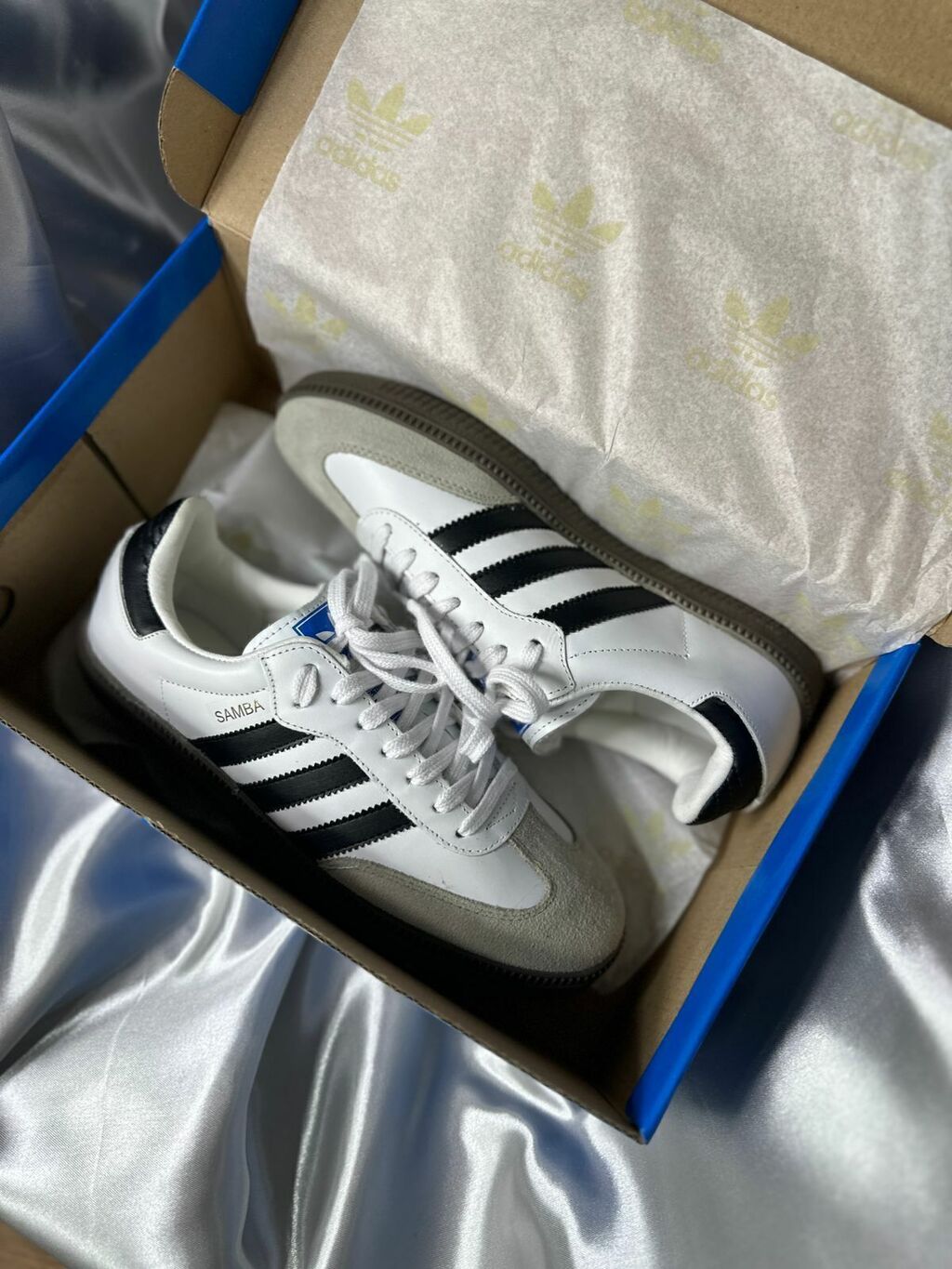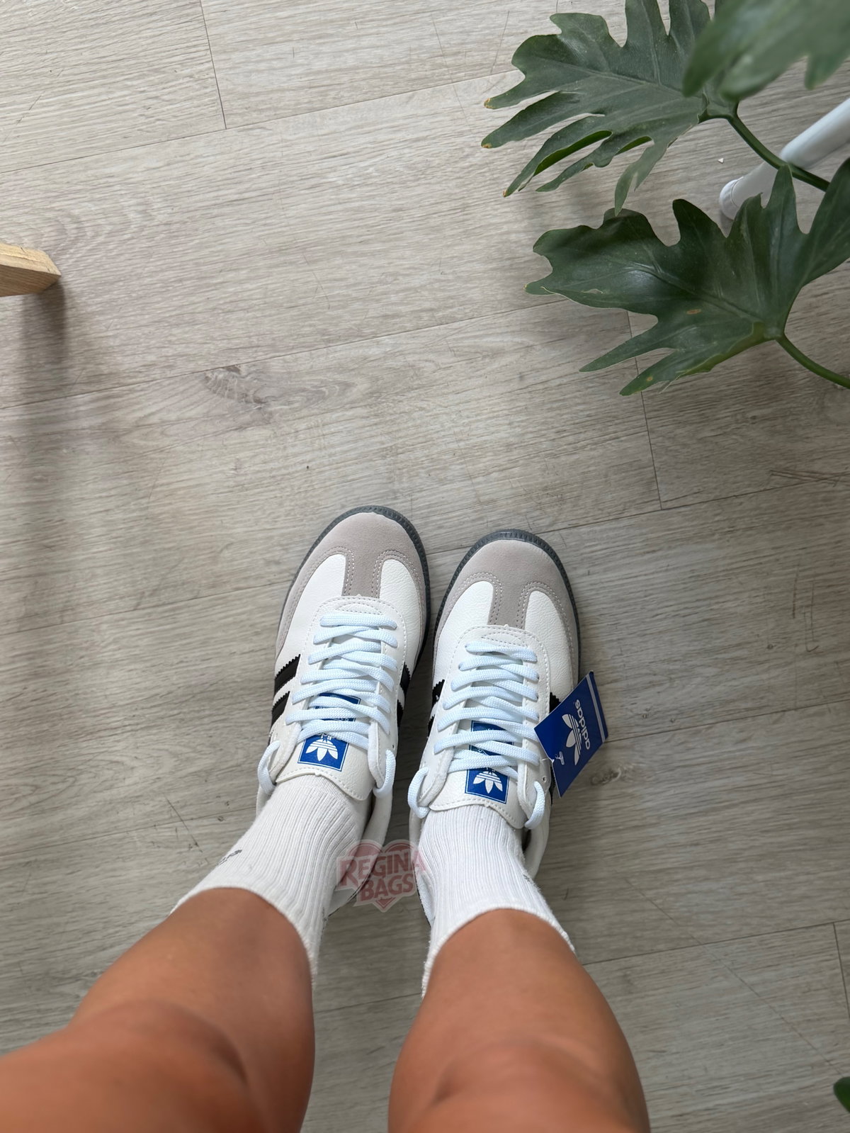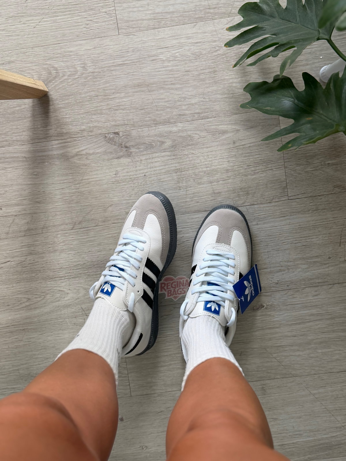 Samba de ecocuero y gamuza blancas con negro importadas