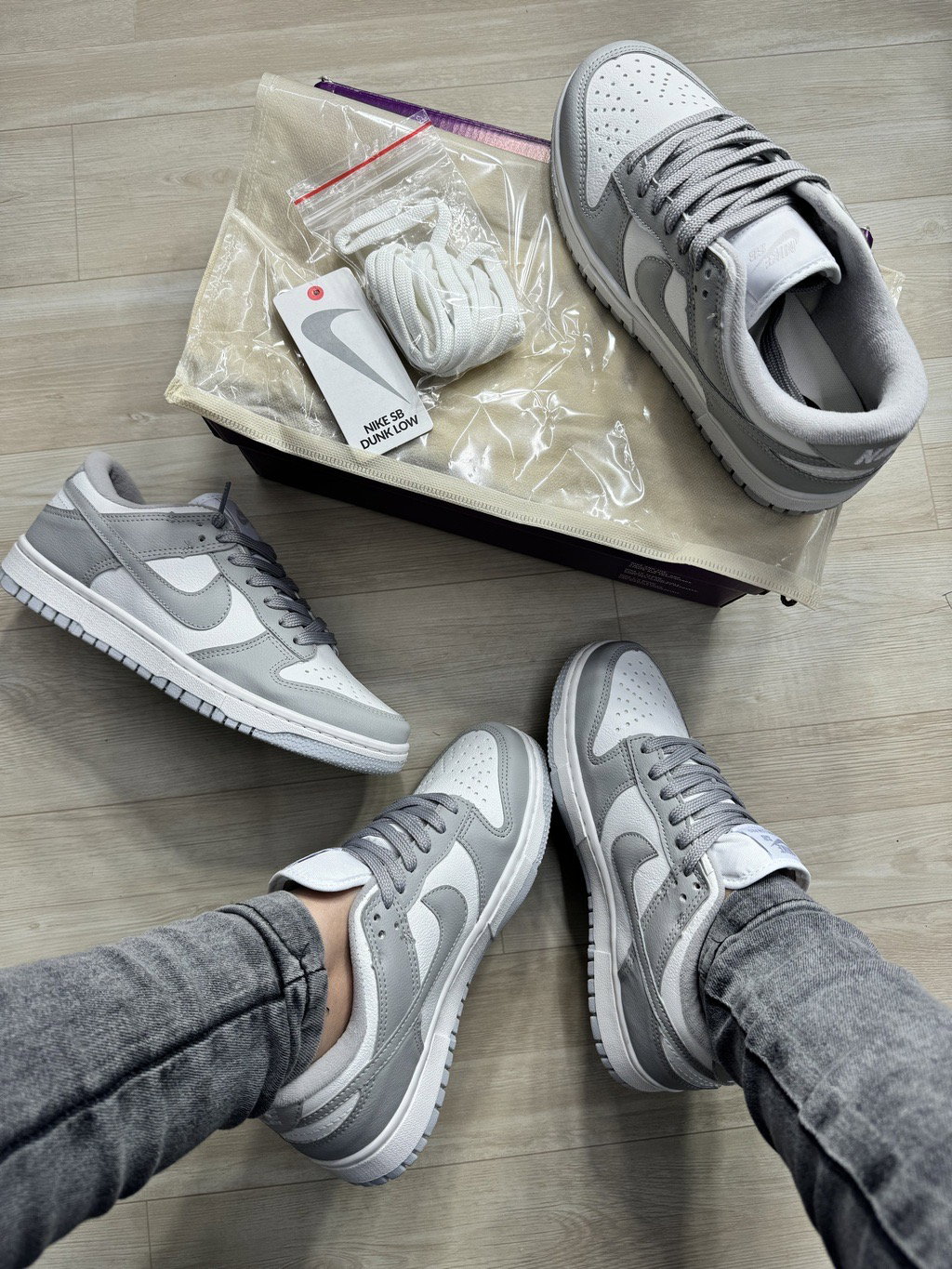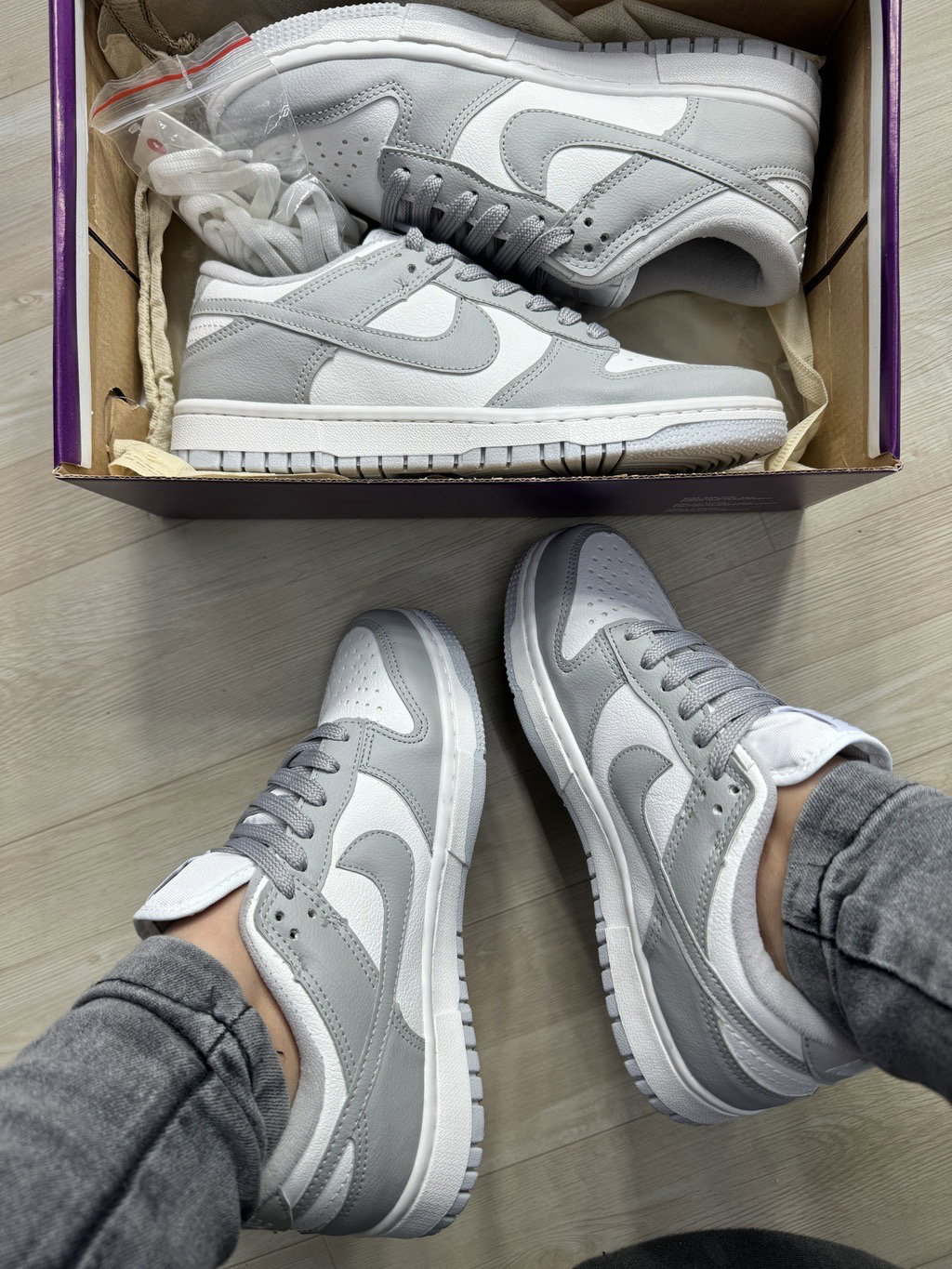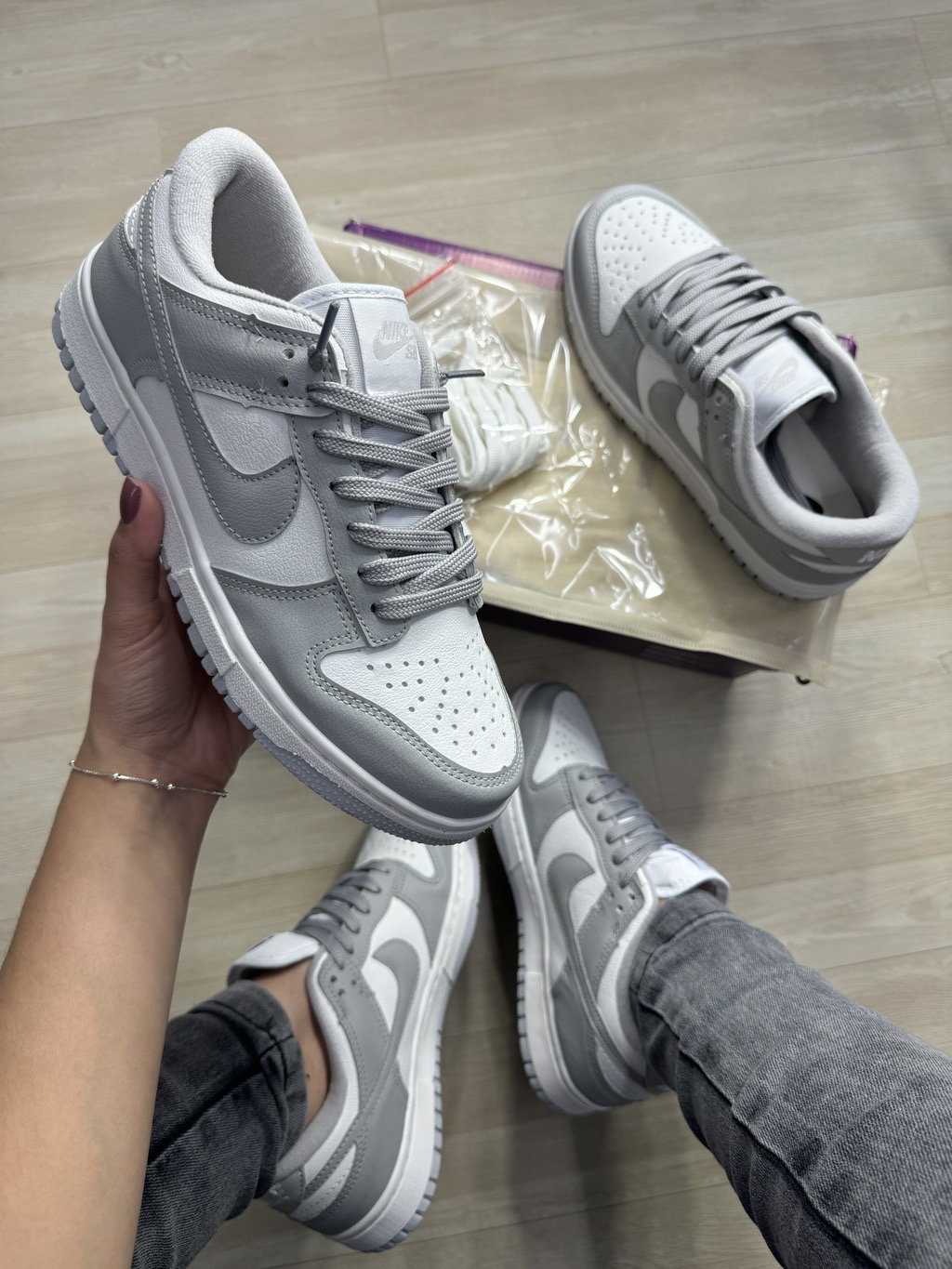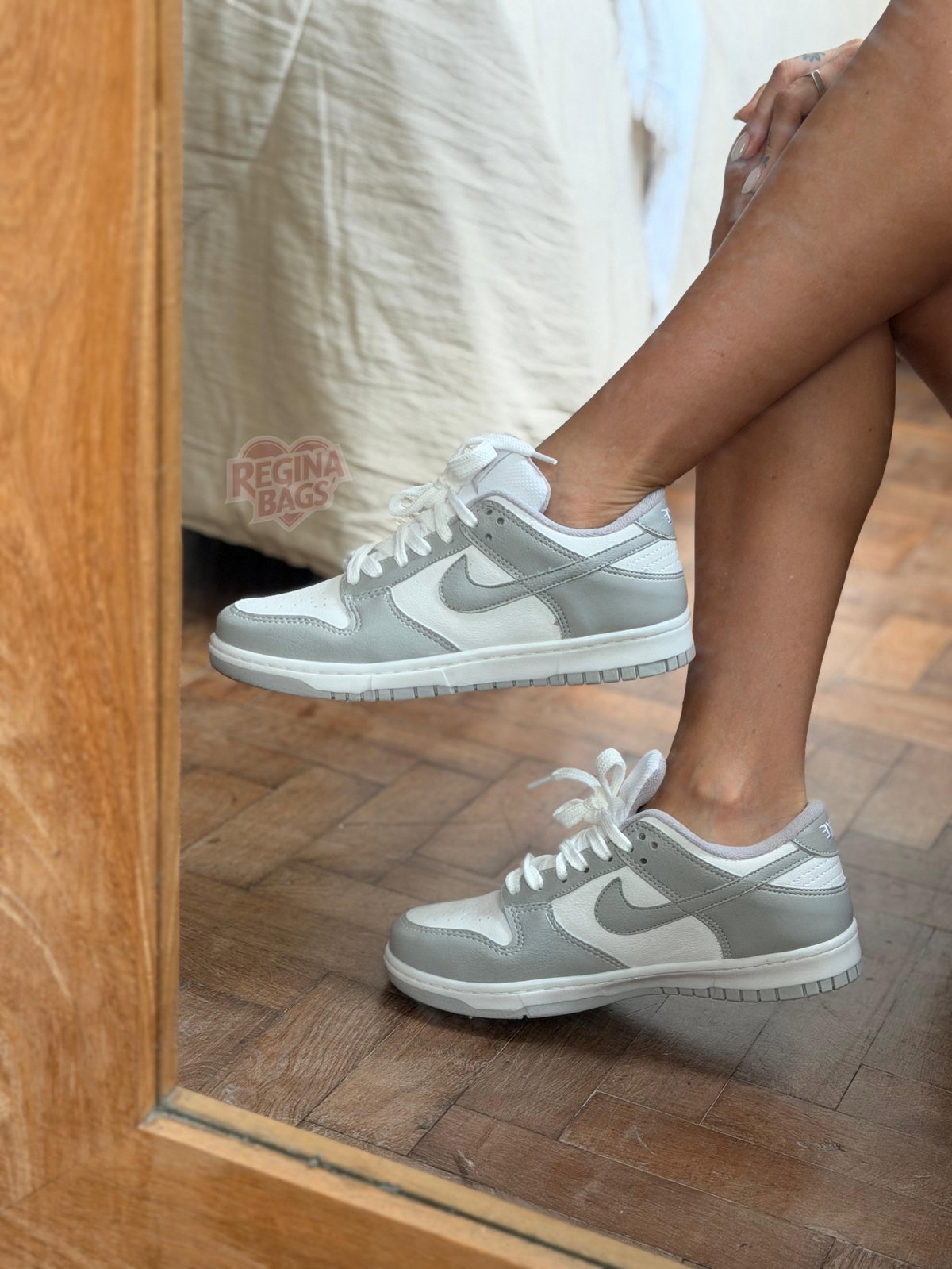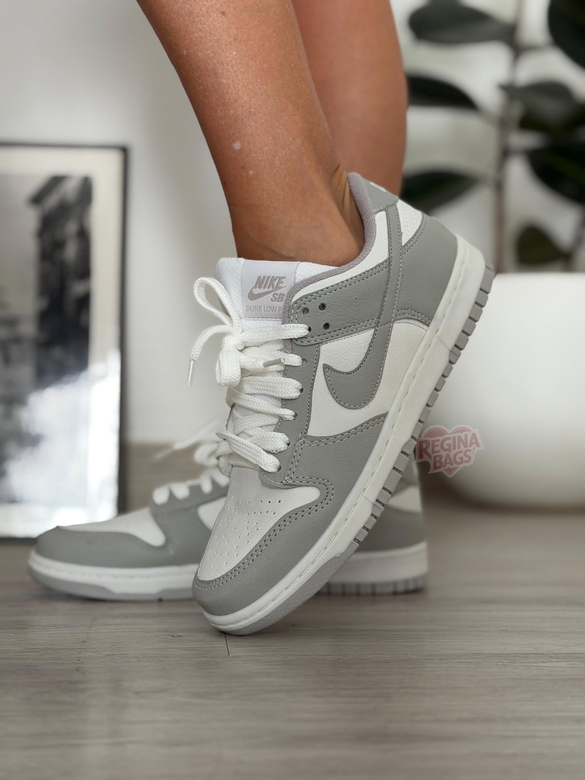 SB DUNK de ecocuero gris y blancas importadas