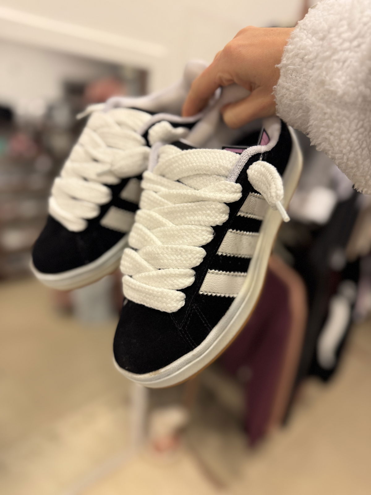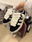 Horma grande. Elegir un talle menos. No tienen fallas, solo que se nota un poco el color de la gamuza en las tiras del costado y la suela. DETALLES VISIBLES EN LAS FOTOS.