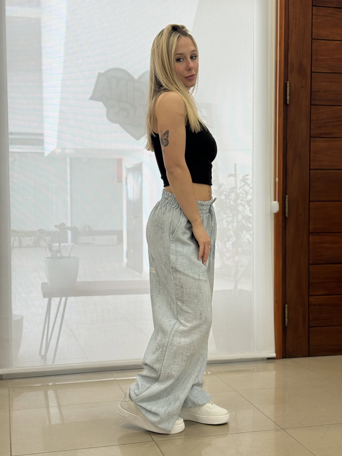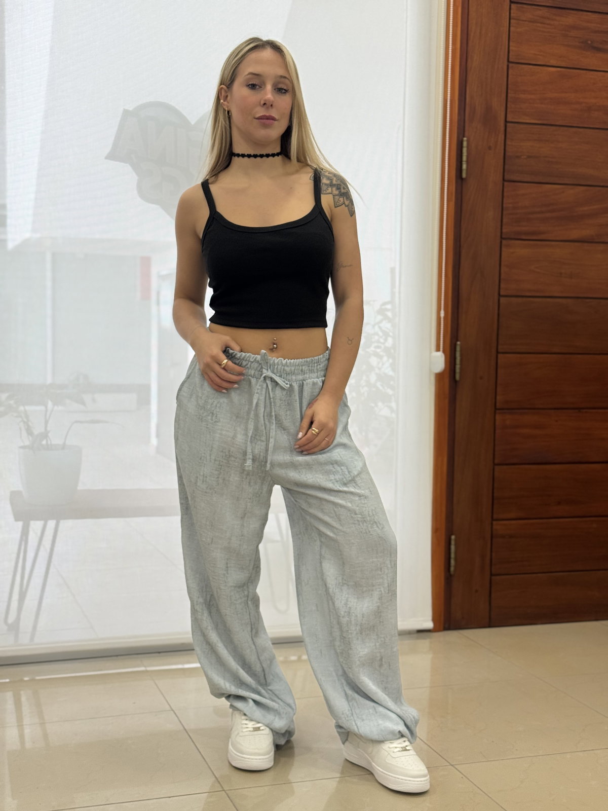 TALLE M: CINTURA ESTIRADA 52 CM, 90 CM CADERA, PIERNA 34 CM, 102 CM LARGO