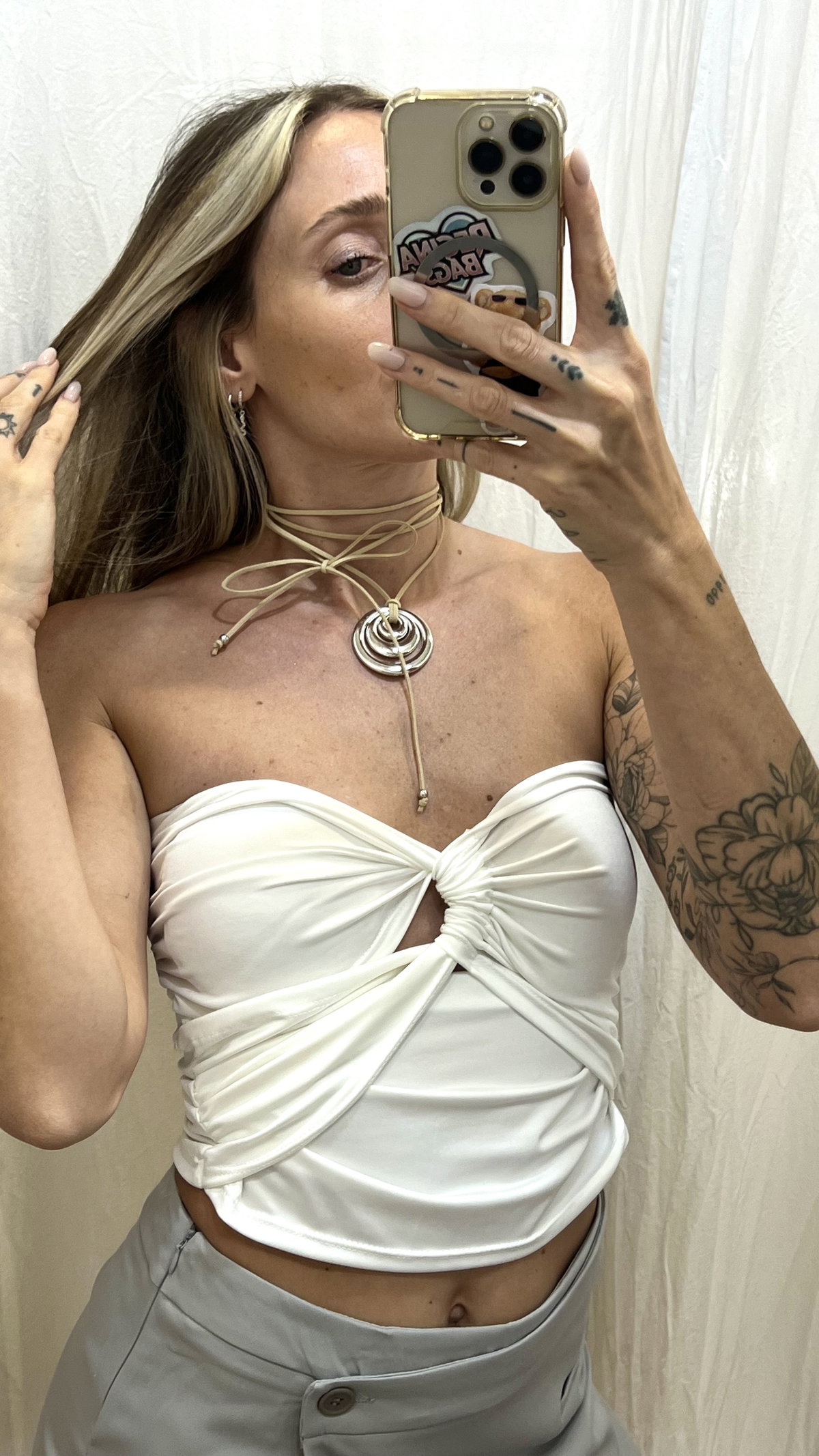 Talle único. Referencia: la modelo mide 1.67 m, usa talle 38 de Jean y M en la parte superior.