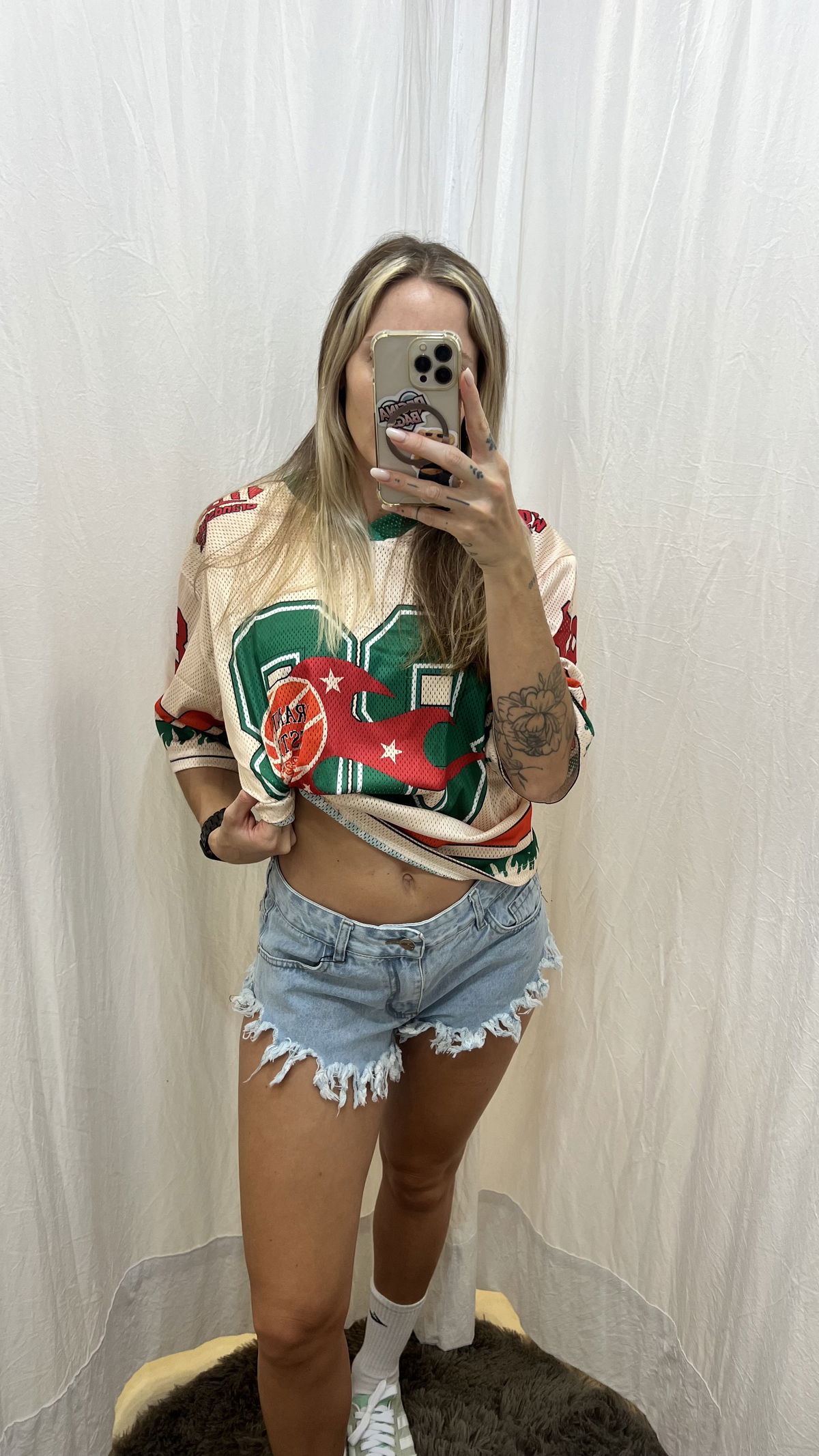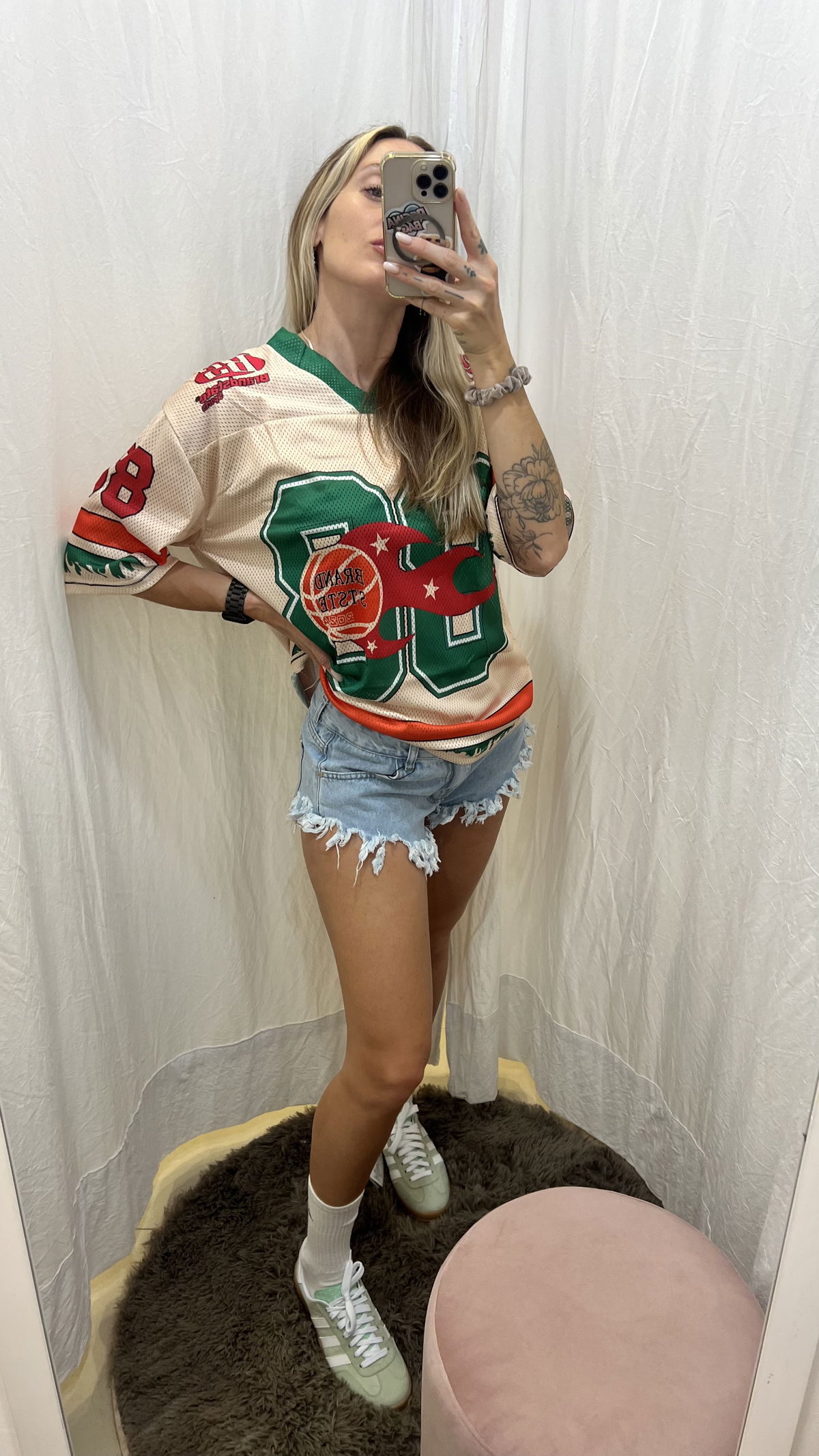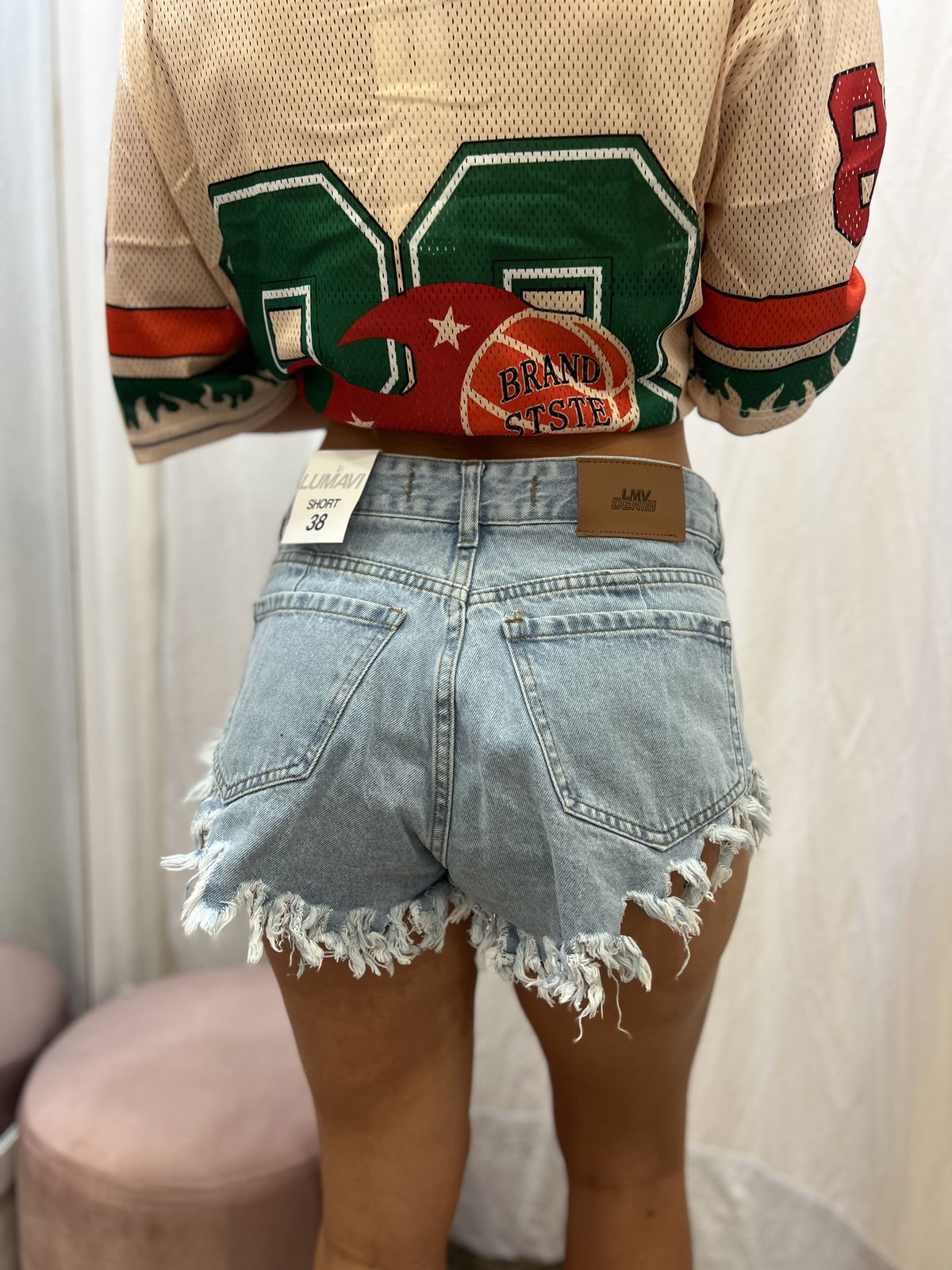 Referencia: la chica de las fotos mide 1.67, usa talle 36/38 de jean y talle M en la parte superior. De este modelo está usando talle 38.