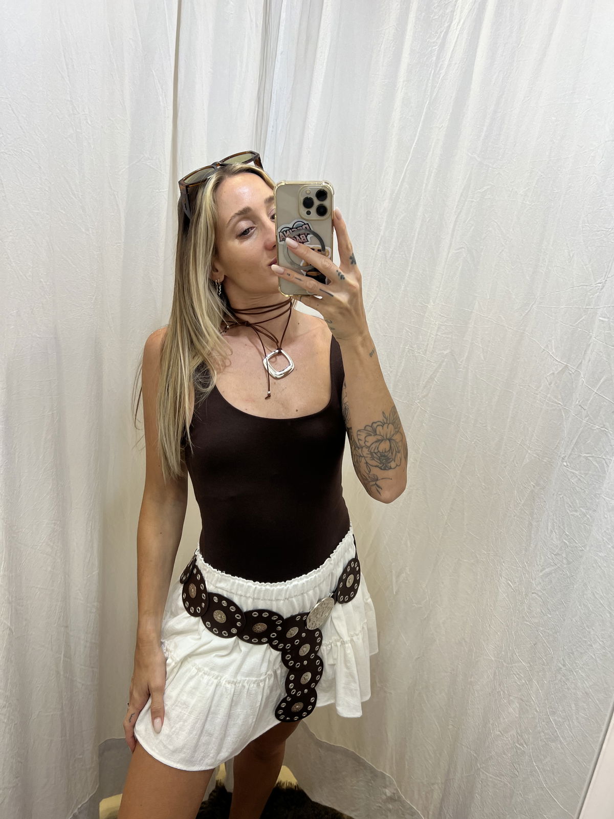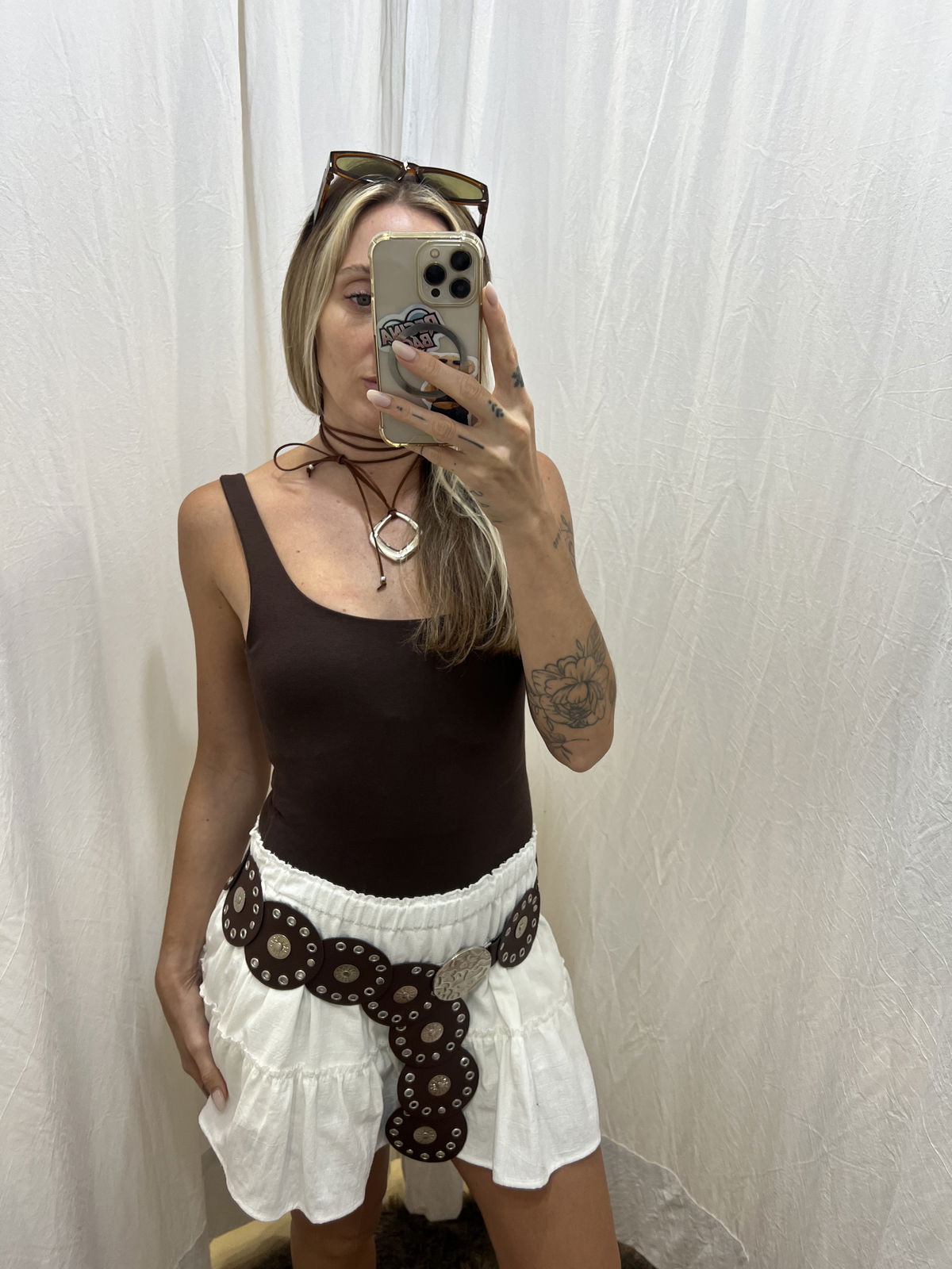 Referencia: la chica de las fotos mide 1.67, usa talle 36/38 de jean y talle M en la parte superior. Tiene short en la parte de abajo.