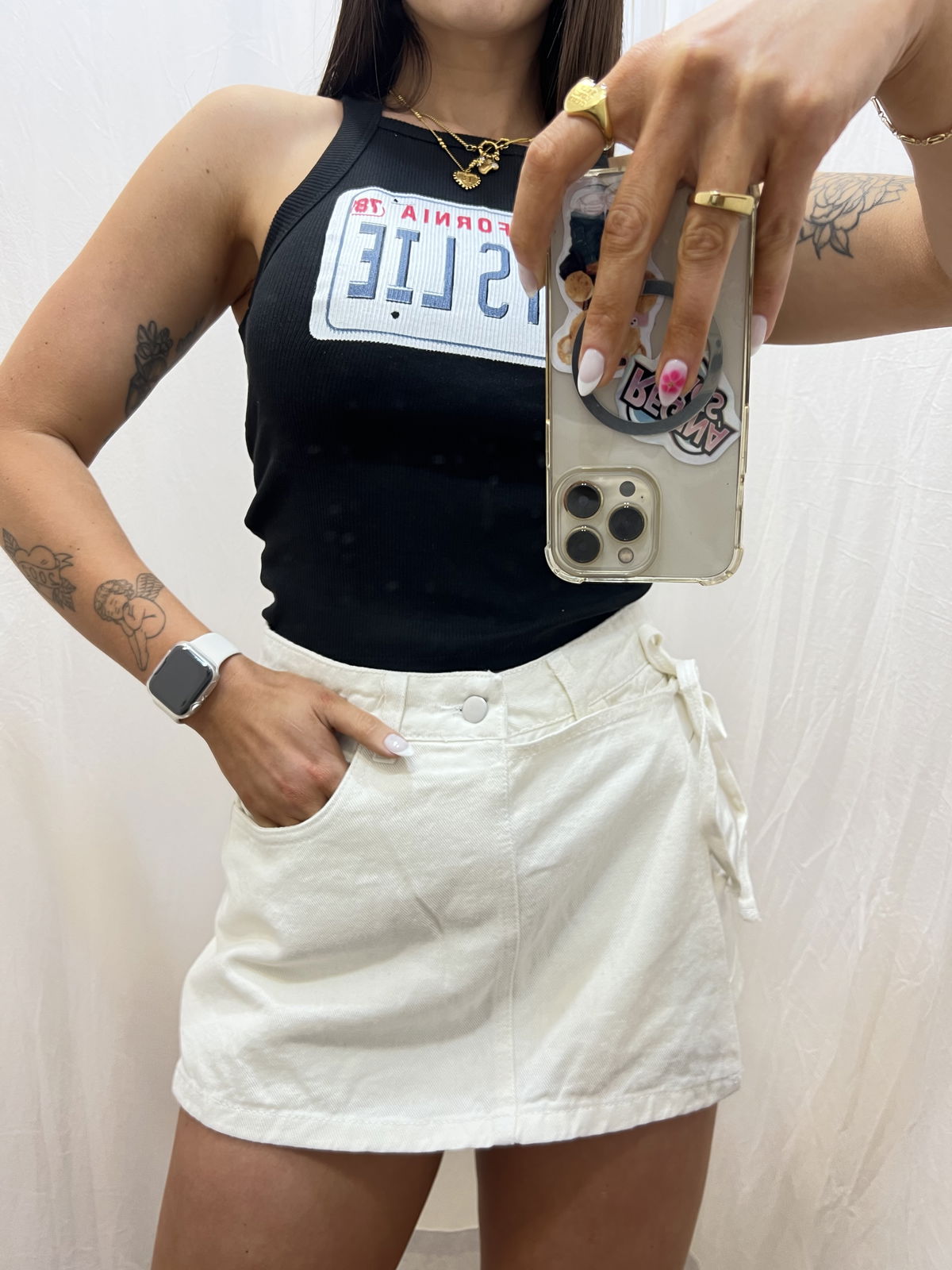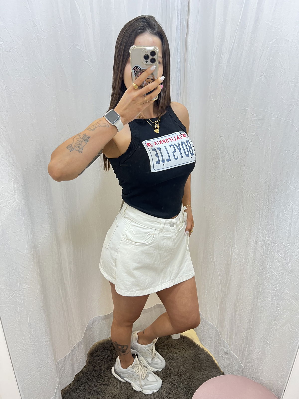 referencia: la chica de la foto mide 1,68, usa talle 38 de Jean y M en la parte superior. En la foto está usando talle 36.